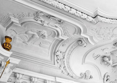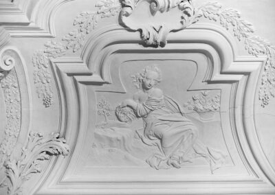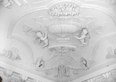 Literatur: Rinn, Babara: Italienische Stuckateure zwischen Elbe und Ostsee. Stuckdekorationen des Spätbarock in Norddeutschland und Dänemark, Kiel 1999, S. 252−255; Döry, Ludwig Baron von: Die Stuckaturen der Bandelwerkzeit in Nassau und Hessen, Frankfurt a.M. 1954